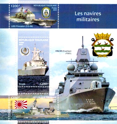 Left a sheet of Togo with three stamps with warships. Depicted are USS "Princeton", "Errafii"